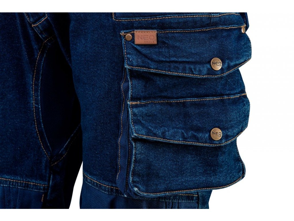 Pracovní kalhoty s 5 kapsami z kolekce NEO DENIM byly navrženy oděvními technology NEO s ohledem na každý detail a styl. Kalhoty jsou pohodlné, módní a praktické - přídavek elastanu zvyšuje komfort nošení a vsadky z oxfordské bavlny chrání před oděrkami. Kvalitní pracovní kalhoty se hodí na každodenné nošení.