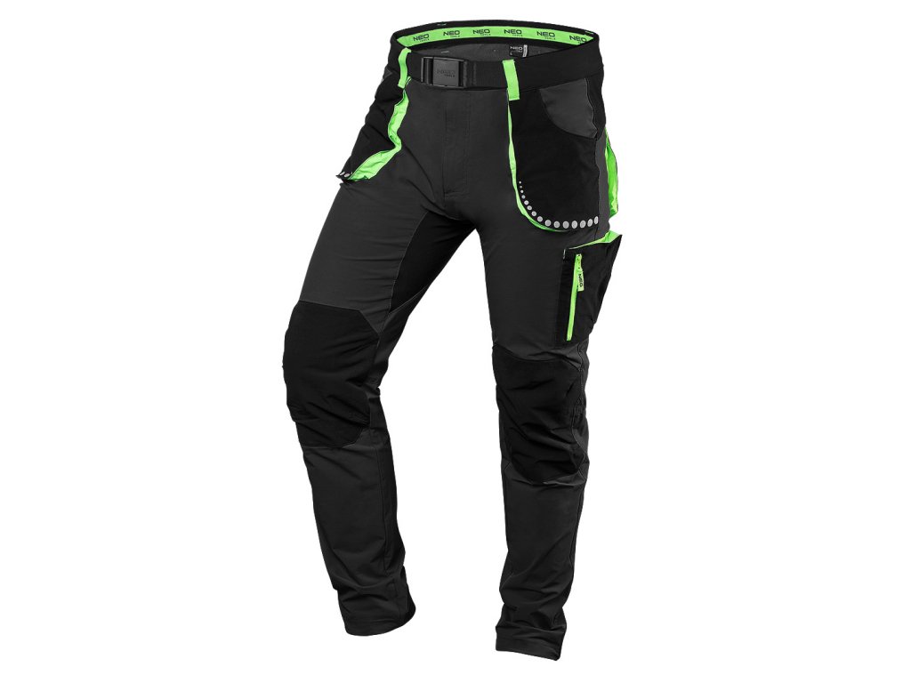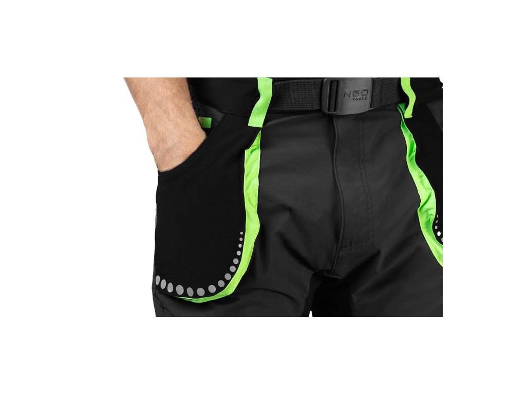 Praktické a multifunkční kapsy poskytují dostatek prostoru pro nástroje, telefon nebo drobnosti, zatímco reflexní zóny zvyšují viditelnost a bezpečnost při práci za šera nebo v noci. Bavlněný pásek s plastovou sponou a vyraženým logem NEO zajišťuje přiléhavost a stylový vzhled. Pro snadnou identifikaci je uvnitř kalhot umístěna jmenovka.