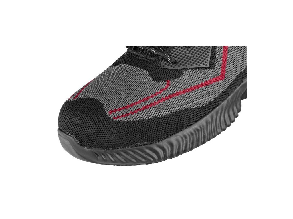 Svršek je vyroben z prodyšné pleteniny a TPU výztuh, které zvyšují pevnost a stabilitu obuvi. Podšívka z pletené síťoviny zaručuje dobrou cirkulaci vzduchu, zatímco podrážka z EVA pěny a stélka z HI-POLY pěny tlumí nárazy a poskytují pohodlí. Reflexní tkaničky přispívají k lepší viditelnosti při práci.
