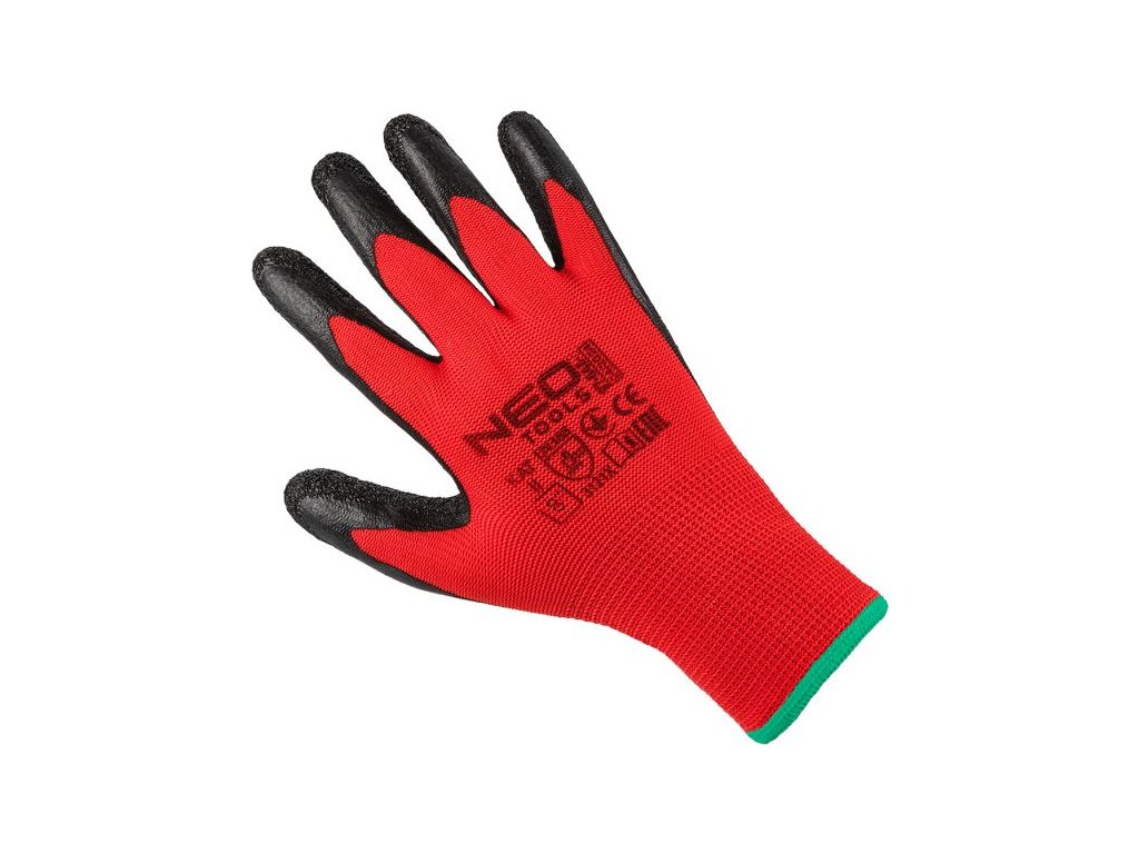 Pracovní rukavice NEO TOOLS 97-645K jsou univerzálním řešením pro širokou škálu činností – od stavebnictví a logistiky, přes zahradnické a montážní práce, až po automobilový průmysl či hobby využití. Jsou vyrobeny z odolného polyesteru, potaženého latexem se zvlněnou strukturou, která zajišťuje pevný úchop a odolnost proti skluzu.