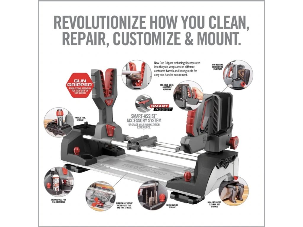 Master Gun Workstation představuje pokročilou víceúčelovou platformu pro všechny, kteří pracují s dlouhými zbraněmi – od běžného čištění až po náročnější úpravy či montáž optických systémů. Stanice kombinuje stabilitu, nastavitelnost a modulární konstrukci, díky čemuž nabízí komfortní a bezpečné pracovní zázemí doma i na střelnici.