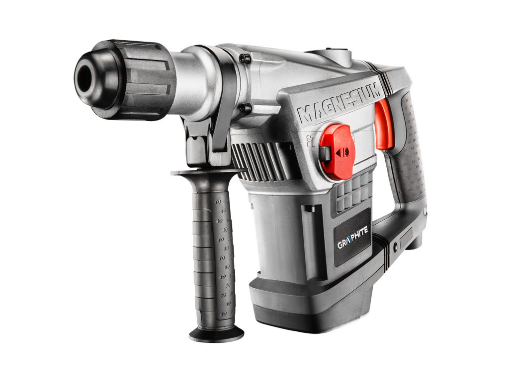 Speciální dvoufunkční příklepová vrtačka SDS MAX GRAPHITE (ref. č. 58G874) s motorem 1250 W je nepostradatelná pro montážní a demoliční práce. Disponuje funkcemi pro pneumatické vrtání a sekání, které je užitečné pro redukci omítnutých stěn. Maximální energie nárazu je 10 J, díky čemuž je nástroj velmi účinný proti materiálům, jako je beton, cihla nebo kámen. Maximální rychlost příklepu při jmenovité rychlosti otáčení je 2800 příklepů za minutu a maximální rychlost otáčení pro vrtání je 450 ot./min.