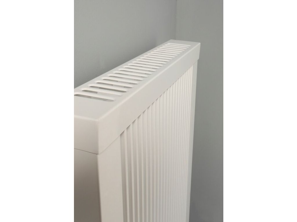 Přímotop s akumulací TT-KS-S plus s individuálně svářenými žebry a práškovou povrchovou úpravou. Barevné provedení v bílé RAL 9003. Má hloubku pouhých 70 mm. Přímotop je vybaven plynule nastavitelným vestavěným termostatem, který ovládá teplotu v místnosti. Připojovací kabel má 1,5 m a je se zástrčkou 230 V ~. Zahrnuje i nožní podporu.