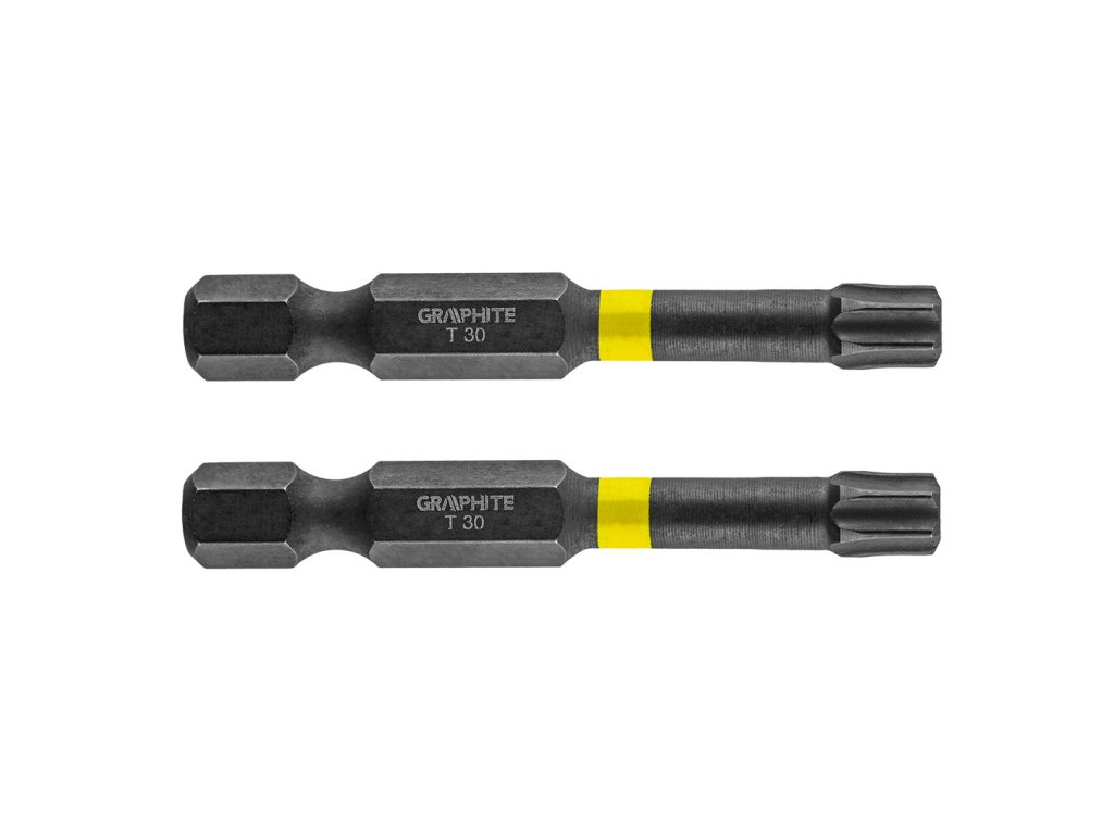 Rázové bity GRAPHITE (ref. 56H528) typ TX30 s celkovou délkou 50 mm jsou bity pro těžké zatížení určené pro těžší práci s vysokými kroutícími momenty pomocí šroubováků nebo rázových utahováků.
