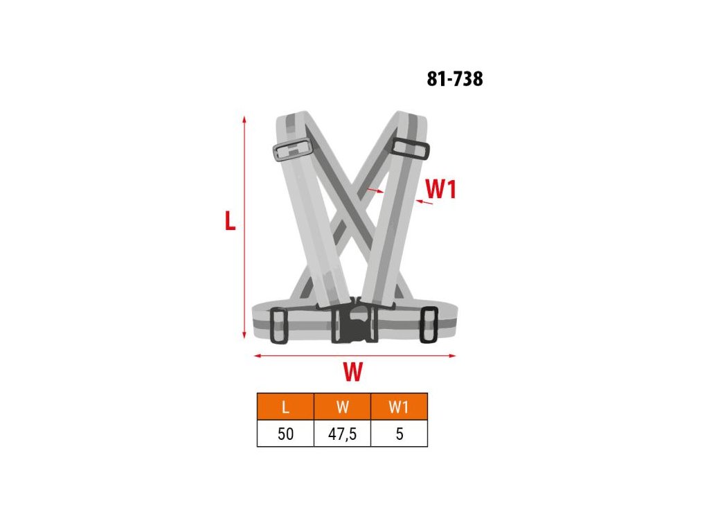 Šle jsou vyrobené ze 100% polyesteru v elegantní černé barvě a vybavené reflexními proužky o šířce 1,5 cm (celková šířka popruhu 4 cm), které výrazně zvyšují viditelnost uživatele po setmění nebo při zhoršených povětrnostních podmínkách.