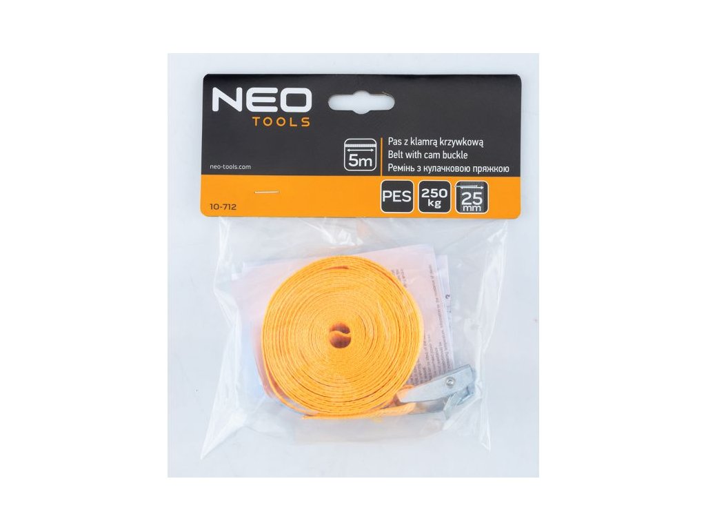 Opasek s přezkou 25 mm × 5 m 10-712 od NEO TOOLS je spolehlivým pomocníkem při přepravě a skladování břemen. Díky pevné konstrukci z odolného PES materiálu zaručuje dlouhou životnost a bezpečné upevnění.
