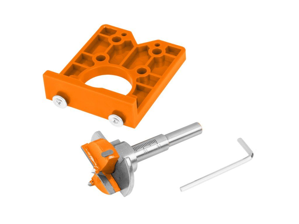 - Řezačka plechovek NEO TOOLS pro otvory 35 mm s nastavitelným dorazem a šablonou.