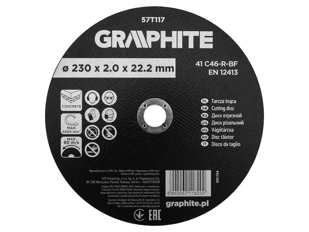 Řezný kotouč GRAPHITE 57T117 je vysoce kvalitní nástroj určený pro přesné a efektivní řezání betonu.