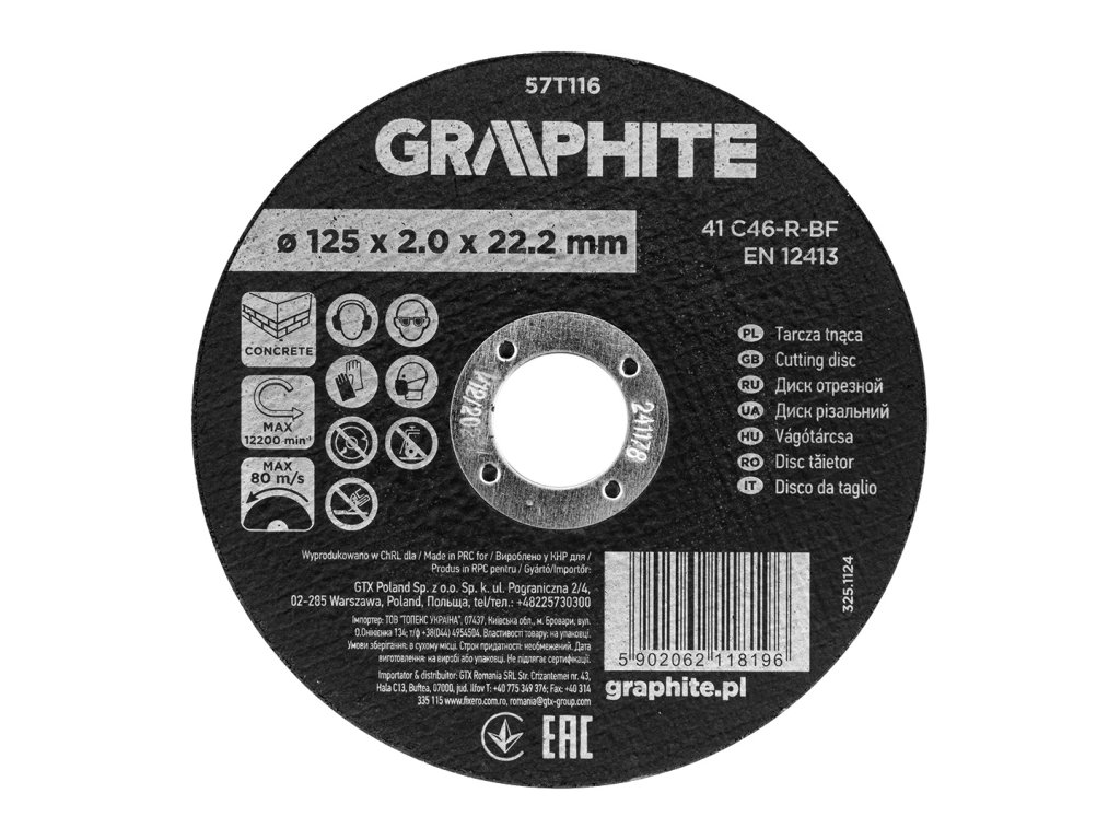 Řezný kotouč GRAPHITE na beton 125 × 2,0 mm, plochý (41 C46-R-BF)