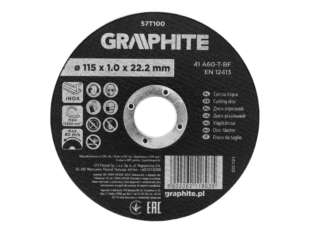 Řezný kotouč na kov/INOX GRAPHITE 57T100 je vyroben z kvalitního korundu a je určen pro přesné a rychlé řezání kovů i nerezové oceli.