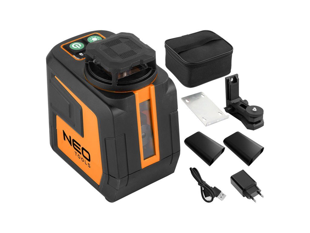 - Rovinný laser NEO TOOLS 20 m s 5 čarami, zelené světlo.