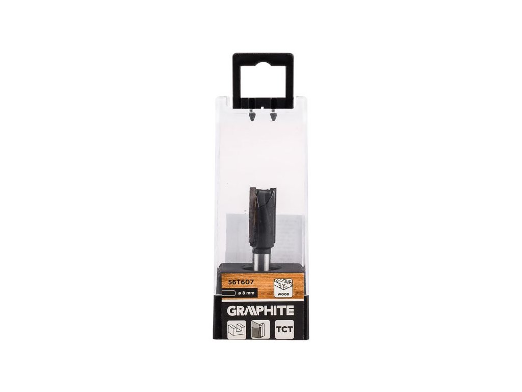 Rovná oboustranná fréza GRAPHITE 56T607 je spolehlivý nástroj určený pro přesné opracování dřeva. Je vybavena průměrem čepele 12 mm, výškou 25 mm a stopkou 8 mm, přičemž její celková délka činí 57 mm.