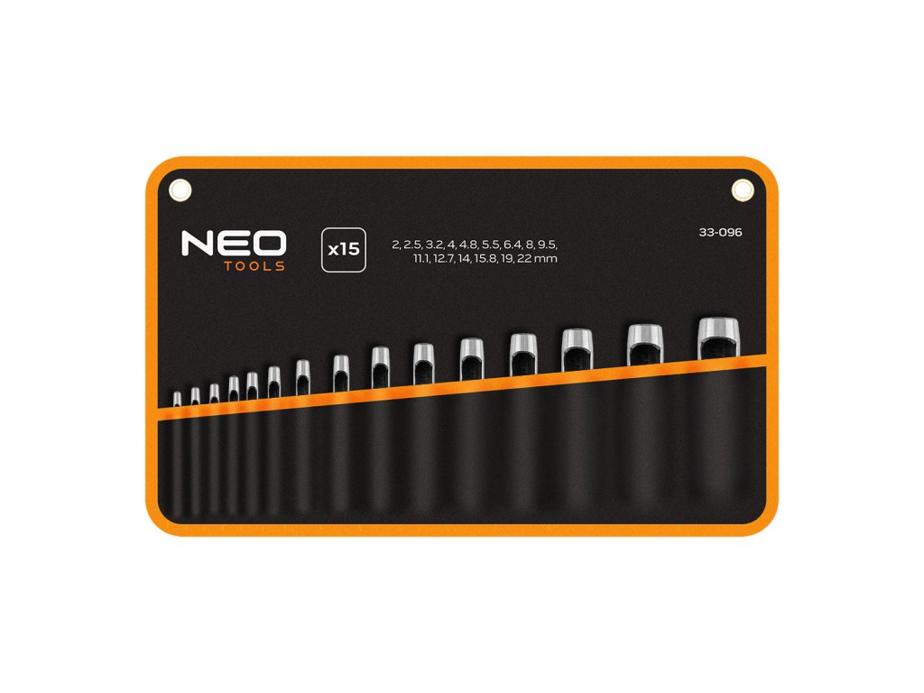 Sada děrovačů NEO TOOLS 2–22 mm, 15 ks, oxfordské pouzdro (33-096)