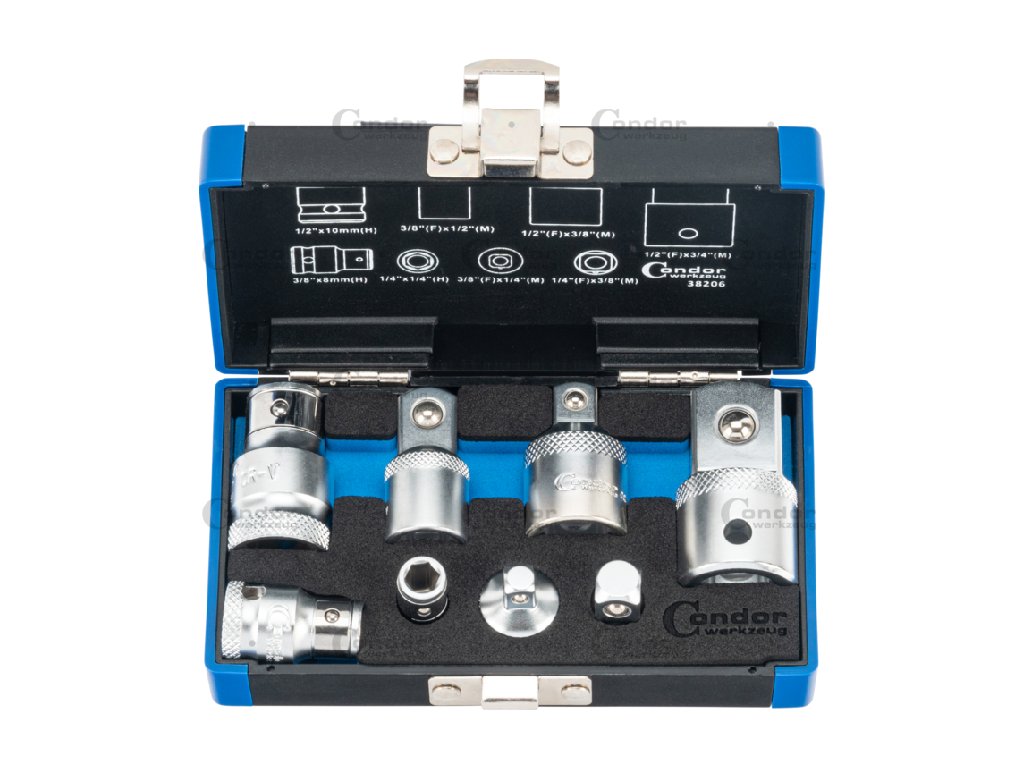 Tato profesionální sada adaptérů je určena pro širokou škálu dílenských, montážních i servisních prací. Díky kombinaci adaptérů na bity a přechodových redukcí je kompatibilní s většinou nástrčných hlavic, ráčen i elektrického nářadí. Celá sada je vyrobena z kvalitní chrom-vanadiové oceli (CR-V), která zajišťuje pevnost, odolnost a dlouhou životnost i při náročném použití.