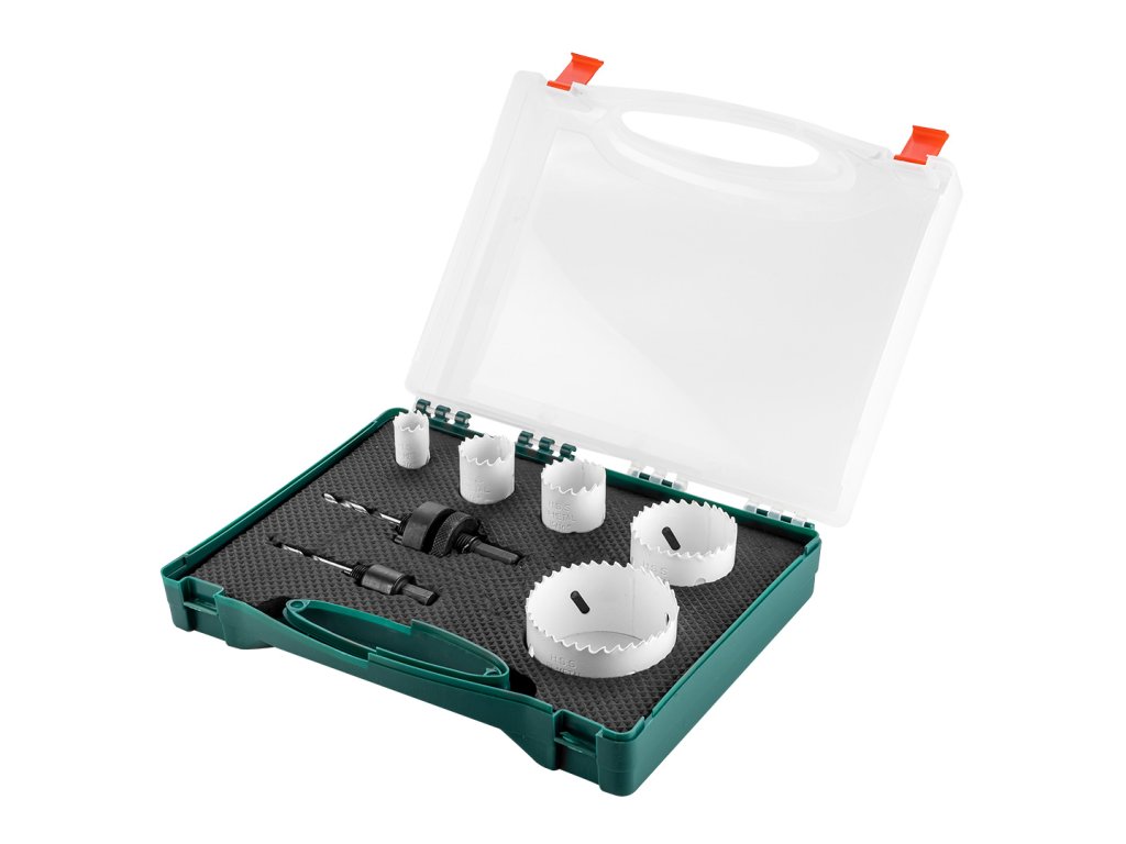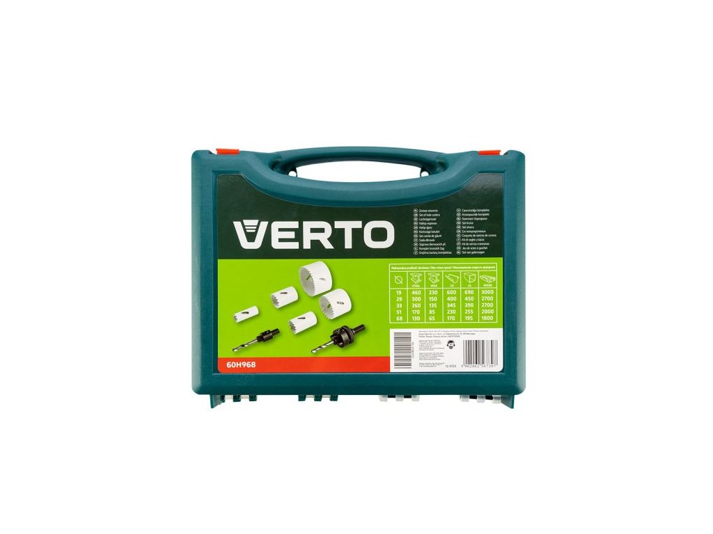 Bimetalové frézy děr VERTO (ref. č. 60H968), sada 7 ks o průměrech 19 až 68 mm.
