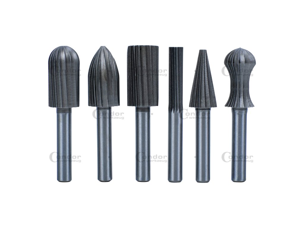 Každý kus má délku 50–54 mm a standardní hřídel 6 mm, což zajišťuje kompatibilitu s většinou sklíčidel. Sada je ideální pro domácí dílnu i profesionální použití, kde je potřeba přesné a čisté opracování menších otvorů či detailů.