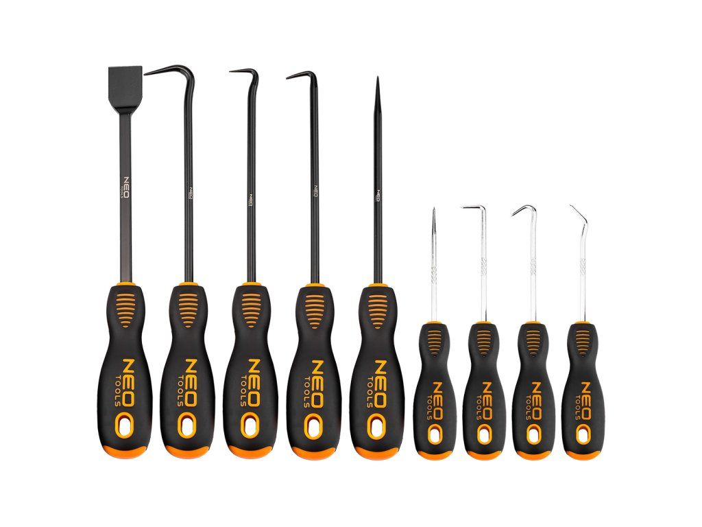 - Sada háčků NEO TOOLS 9 kusů z CS oceli.