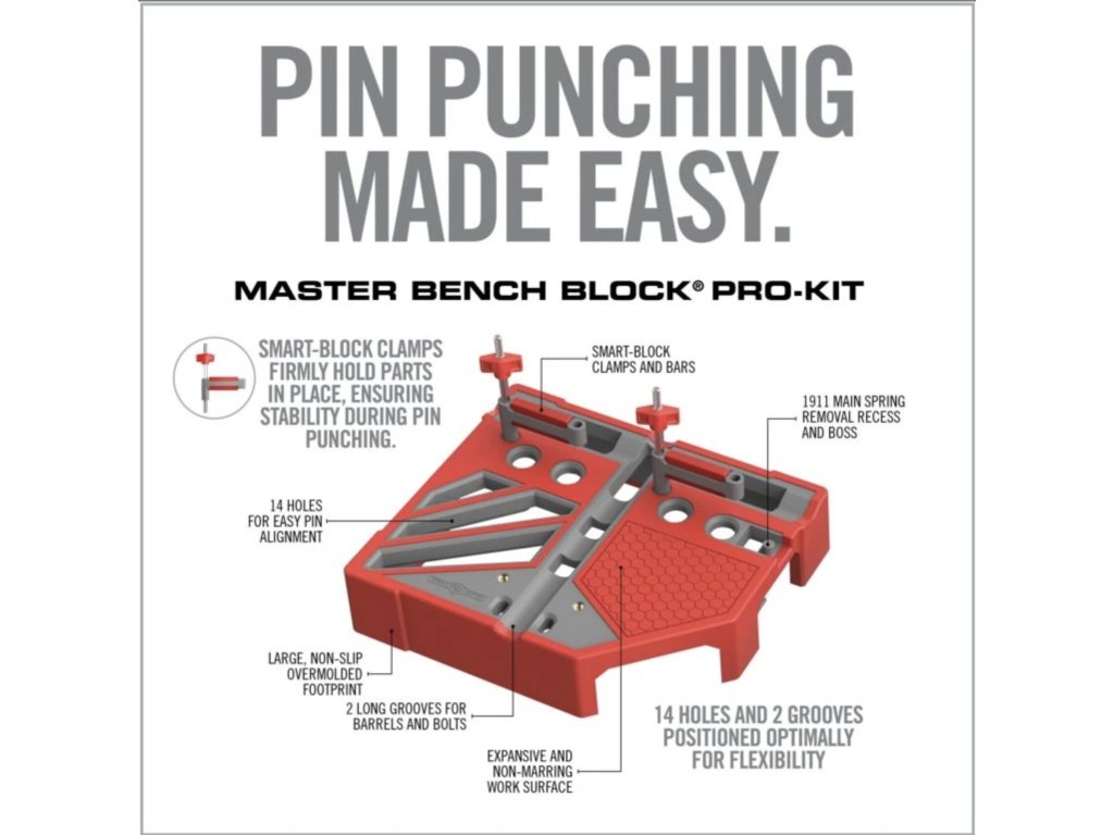 Master Bench Block Pro Kit je profesionální sada nářadí navržená pro střelce, puškaře, zbrojíře i nadšence, kteří vyžadují maximální přesnost a kvalitu při údržbě svých zbraní. Tento set kombinuje širokou sadu průbojníků, multifunkční kladívko a vyspělou pracovní podložku Master Bench Block Pro – vše v jednom efektivním balení.
