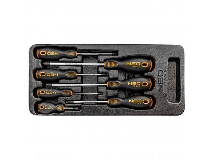 Nástroje jsou dodávány v praktickém plastovém výlisku, který zapadá do zásuvek dílenských vozíků NEO 84-221 a 84-222.