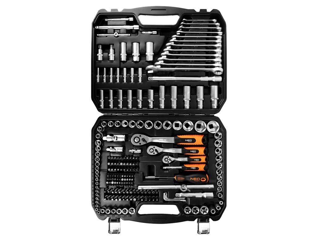 - Kompletní sada 216 nástrčných klíčů NEO TOOLS.