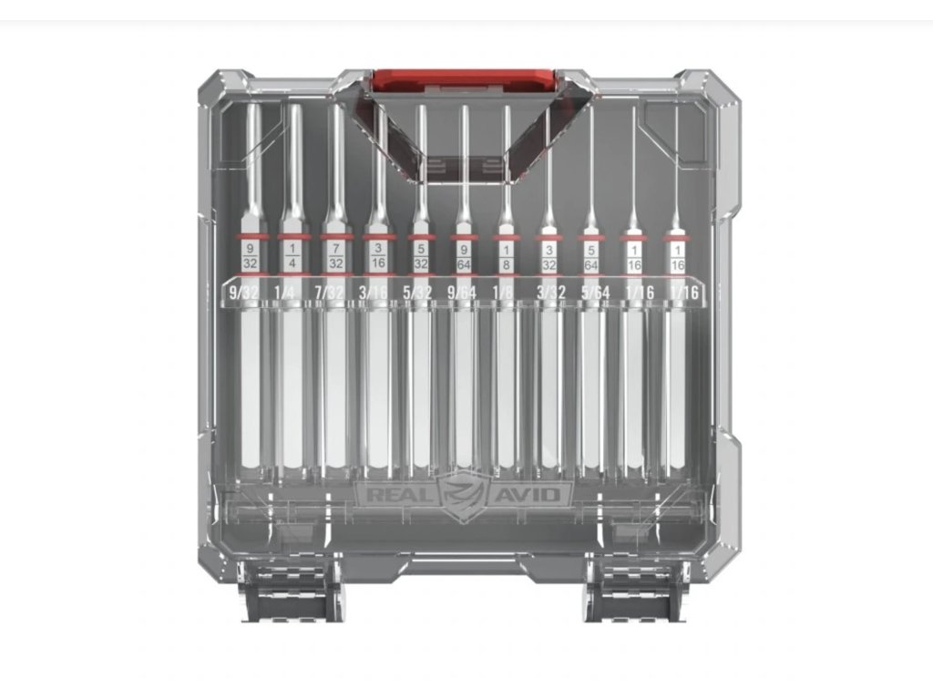 Souprava 11 průbojníků Real Avid je navržena pro přesnou a bezpečnou práci při demontáži a údržbě široké škály zbraní. Všechny průbojníky jsou vyrobené z tvrzené oceli, která jim dodává vysokou pevnost, a jejich niklovaný povrch je chrání před korozí i dlouhodobým opotřebením.