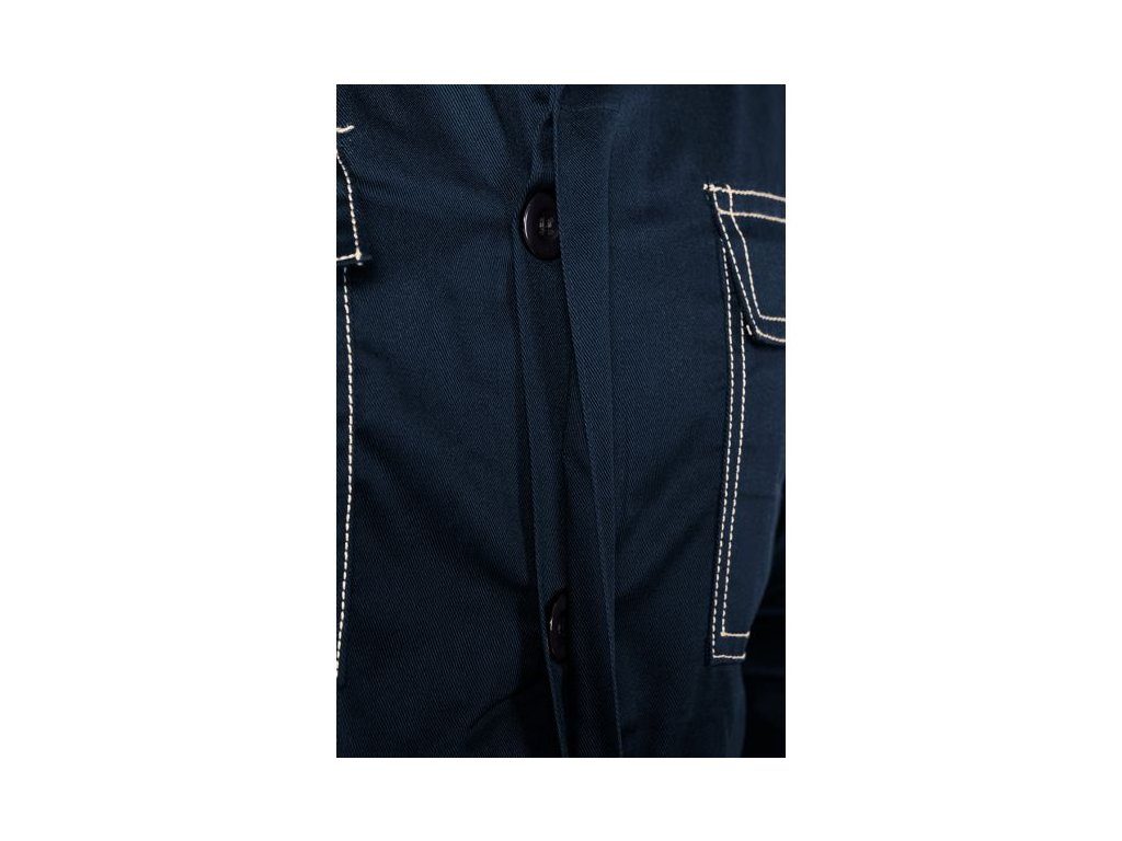 Pohodlný a praktický set pracovního oděvu značky NEO. Vyrobeno z vysoce kvalitní keprové látky, vyznačující se 100% bavlnou s keprovou vazbou a velkými pruhy. Jedná se o vysoce odolný materiál, který dobře drží teplo. Oblečení je také vyrobeno z 65% polyesteru a 35% bavlny s gramáží 210 g/m2. Je tmavě granátové barvy.