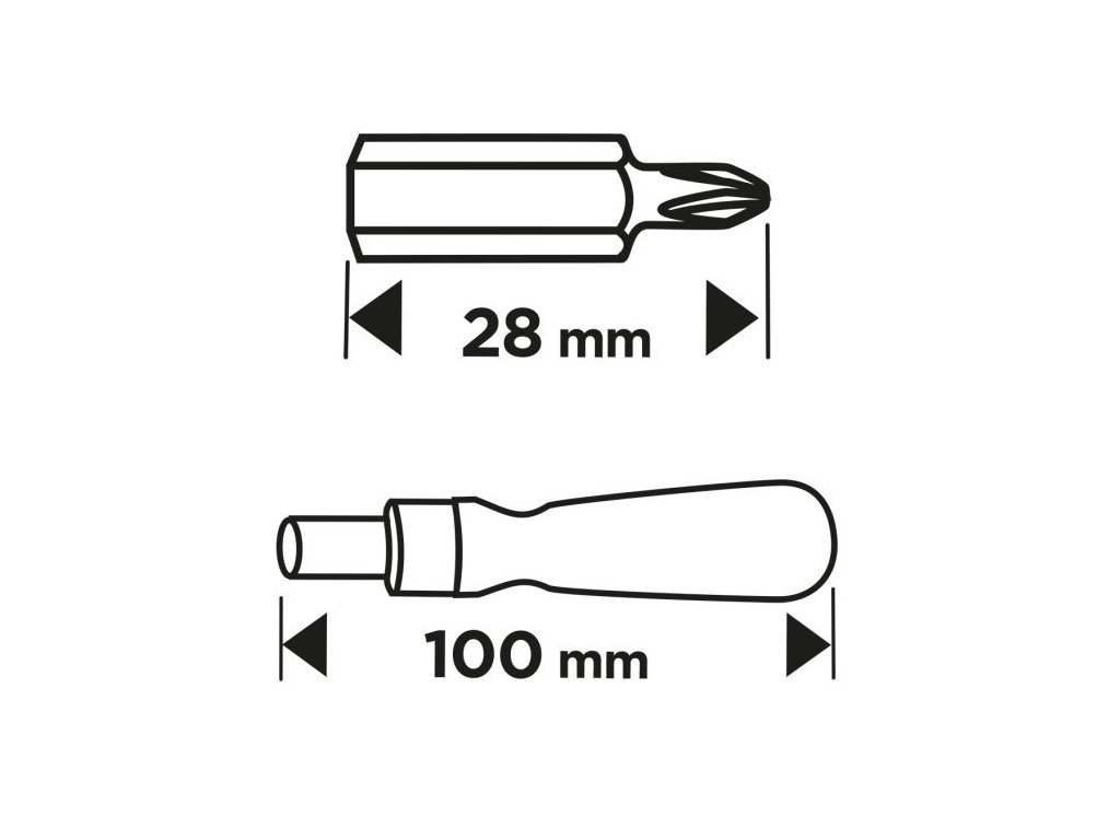 Bity 25 mm: SL4 / SL5 / SL6, PH1 / PH2 / PH3, PZ1 / PZ2 / PZ3, TX10 / TX15 / TX20 / TX25