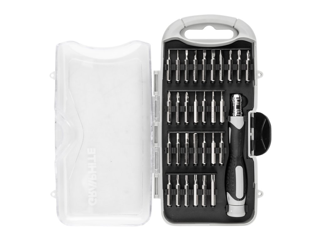 Sada přesných bitů GRAPHITE 56T562 je univerzální výbavou pro precizní i běžné šroubování. Obsahuje 31 kusů příslušenství – přesné bity 28 mm, standardní bity 25 mm a magnetický držák 100 mm. Všechny komponenty jsou vyrobeny z odolné chrom-vanadové oceli (CrV), která zajišťuje pevnost, odolnost proti opotřebení a dlouhou životnost. Magnetický držák je opatřen ergonomickou dvoukomponentní rukojetí pro pohodlné používání.