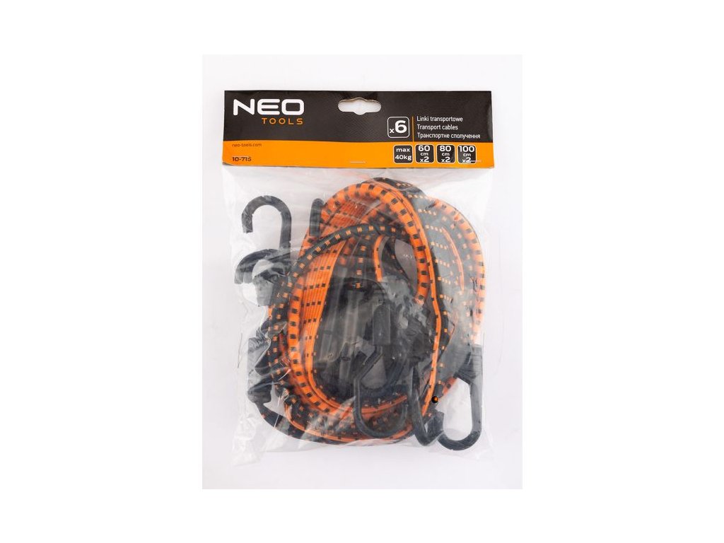 Sada transportních lan NEO TOOLS 10-715 je praktickým pomocníkem pro upevnění, přepravu i skladování břemen. Obsahuje 6 kusů lan vyrobených z kvalitní kombinace gumy a polypropylenu (PP), která zajišťuje vysokou pružnost, stabilitu a odolnost. Každé lano je zakončeno pevným hákem pro snadnou a bezpečnou montáž. Díky univerzálnímu použití najdou gumicuky uplatnění v dílně, domácnosti i při cestování.