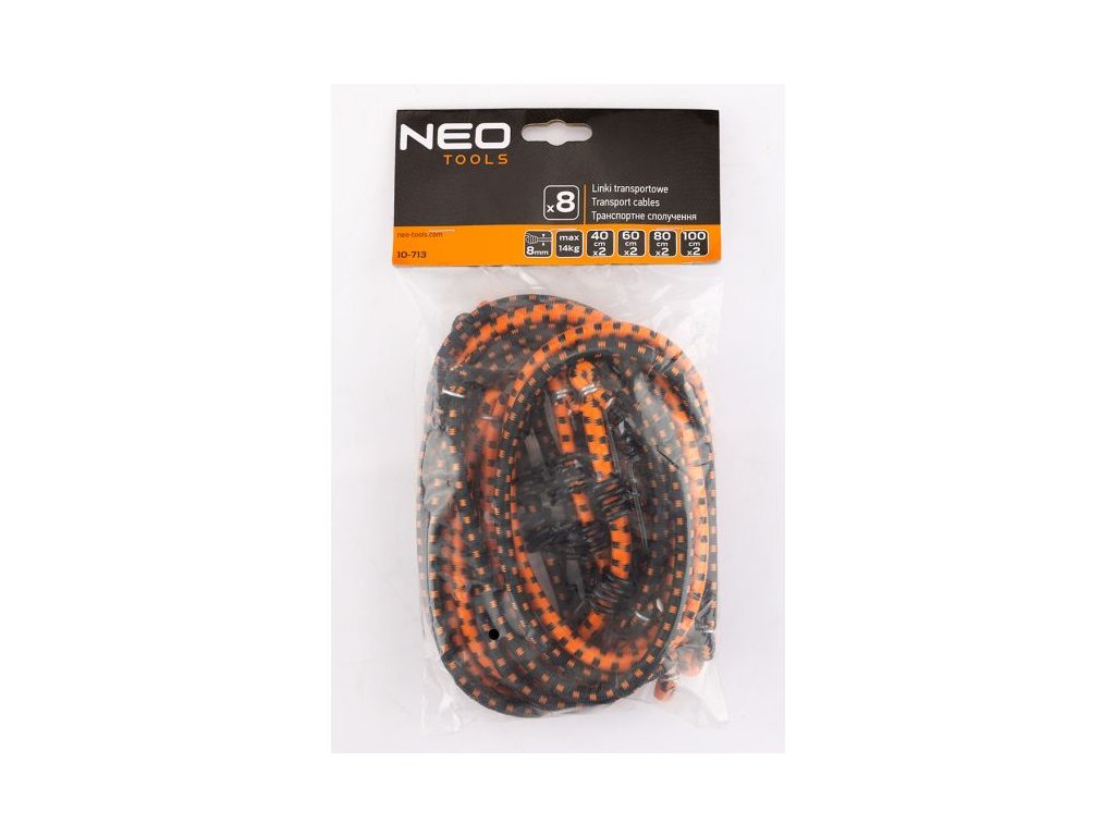 Sada transportních lan NEO TOOLS 10-713 je ideálním pomocníkem při přepravě i skladování břemen. Obsahuje 8 kusů pružných lan vyrobených z kvalitní kombinace gumy a polypropylenu (PP), které zajišťují potřebnou pružnost, stabilitu a dlouhou životnost. Každé lano je zakončeno praktickým hákem, který usnadňuje rychlou a bezpečnou montáž. Díky univerzálnímu použití se gumicuky hodí do dílny, domácnosti, auta i na cestování.