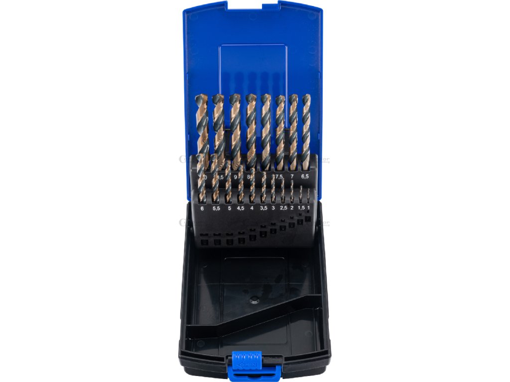 Sada spirálových vrtáků, HSS-T, titanové, 19 ks