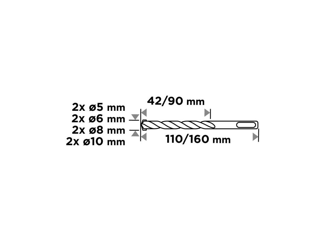 Sada vrtáků do betonu SDS Plus s dvojitou šroubovicí 5 / 6 / 8 / 10 × 110 mm a 5 / 6 / 8 / 10 × 160 mm