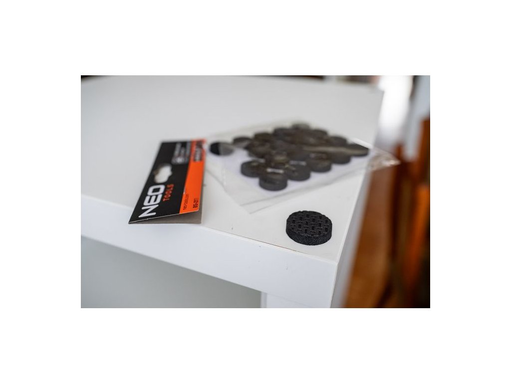 Samolepicí kulaté pěnové podložky NEO TOOLS 85-217 jsou praktickým řešením pro ochranu podlah i nábytku. Díky průměru 28 mm a tloušťce 5 mm poskytují spolehlivou ochranu proti poškrábání i vibracím. Černé provedení působí elegantně a univerzálně zapadne do interiéru.