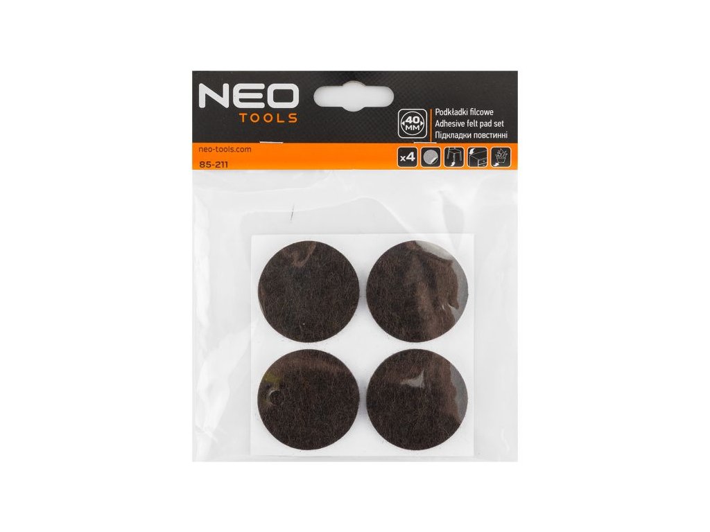 Samolepicí kulaté plstěné podložky NEO TOOLS 85-211 spolehlivě chrání podlahy i nábytek před poškozením. Díky většímu průměru 40 mm a tloušťce 5,5 mm poskytují účinnou ochranu i pro masivnější kusy nábytku. Tmavě hnědé provedení působí elegantně a nenápadně zapadne do interiéru.