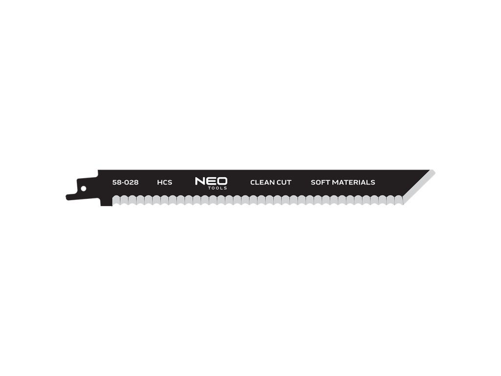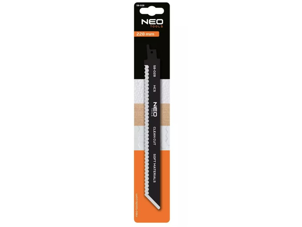 Šavlový pilový list do ocasní pily NEO TOOLS o délce 228 mm je navržen pro čisté řezání měkkých a lehkých materiálů. Je vyroben z kvalitní HCS (vysokouhlíkové oceli), která zajišťuje vysokou pružnost, odolnost proti zlomení a dlouhou životnost i při práci s ohebnými materiály.