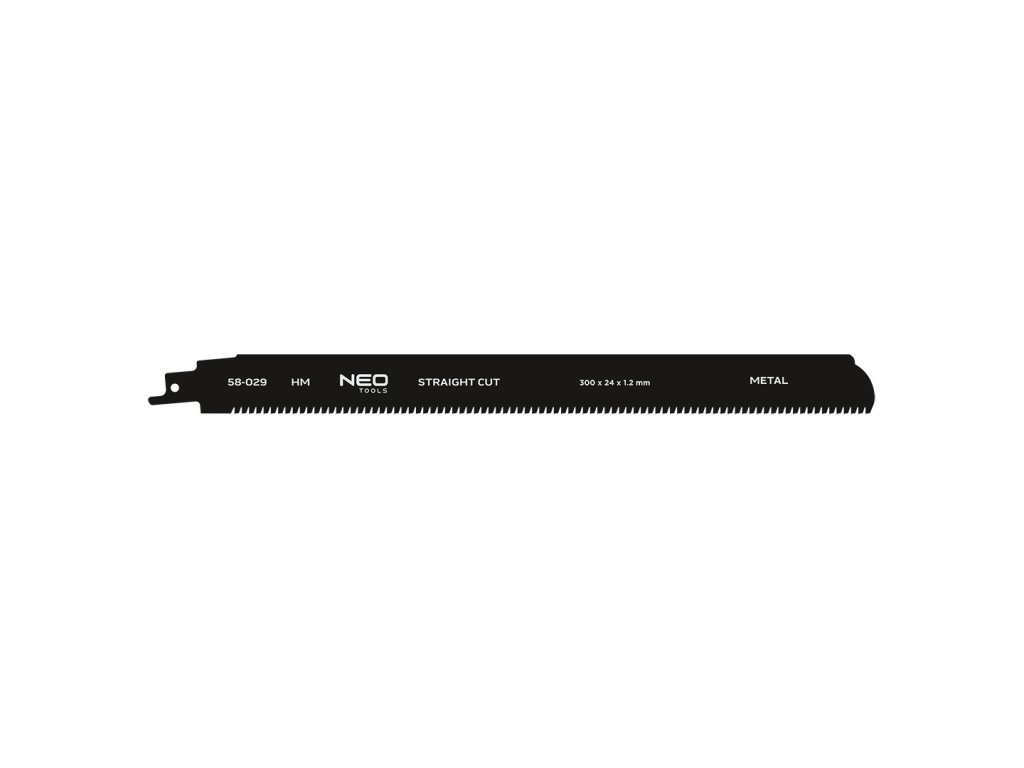 Šavlový pilový list do ocasní pily NEO TOOLS o délce 300 mm je profesionální nástroj navržený pro rovné řezání silných kovů a litiny. Je vyroben ze slinutého karbidu (HM), který zajišťuje mimořádnou odolnost proti opotřebení, vysokou řeznou účinnost a dlouhou životnost i při práci s velmi tvrdými materiály.