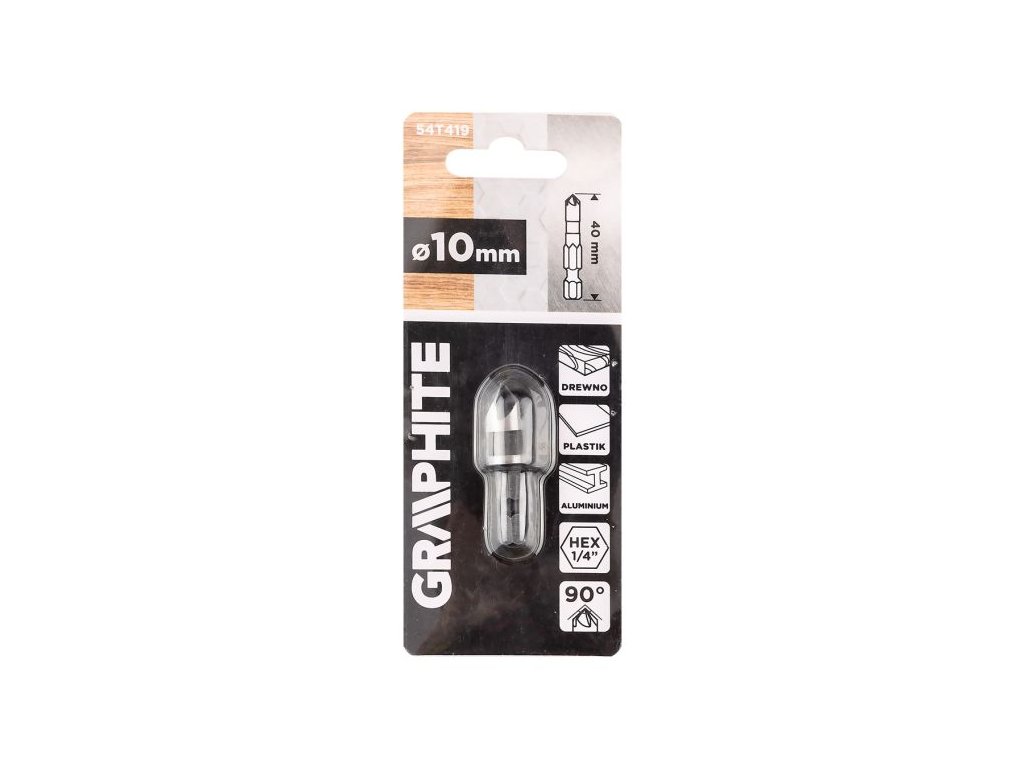 Šestihranná srážecí fréza GRAPHITE 54T419 je určena pro precizní zkosení vyvrtaných otvorů. Umožňuje zapuštění a zarovnání hlav šroubů nebo vrutů v materiálu, čímž zajišťuje estetické i funkční dokončení práce.