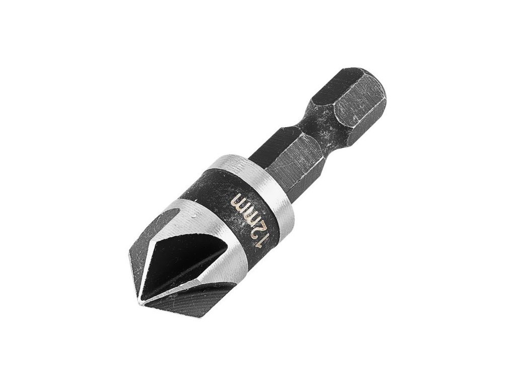 Fréza má průměr 12 mm, celkovou délku 40 mm a úhel hrotu 90°. Je vybavena šestihrannou stopkou ¼" HEX (6,35 mm), která umožňuje pevné uchycení ve šroubovácích a vrtačkách. Díky odolné konstrukci je vhodná pro práci se dřevem, hliníkem i plastem.