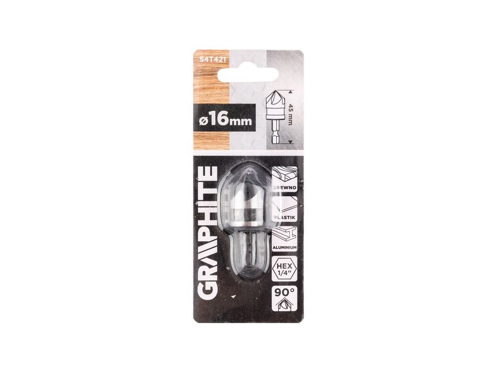 Šestihranná srážecí fréza GRAPHITE 54T421 je nástroj určený pro zkosení a úpravu vyvrtaných otvorů. Umožňuje zapuštění hlav šroubů a vrutů, čímž zajišťuje čisté, estetické a funkční dokončení povrchu.
