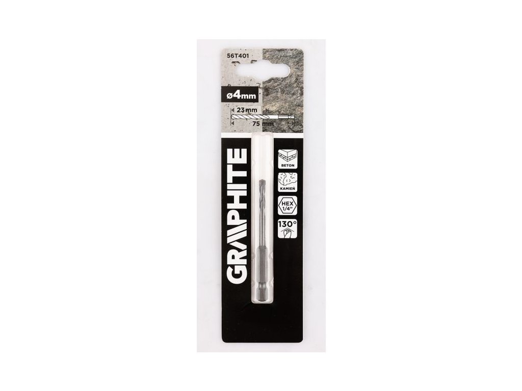 Vrták do betonu GRAPHITE HEX 4,0 mm (56T401) je určený pro přesné vrtání do tvrdých materiálů, jako je beton, cihly a kámen. Díky šestihranné stopce typu ¼" je kompatibilní s běžnými vrtačkami a šroubováky.