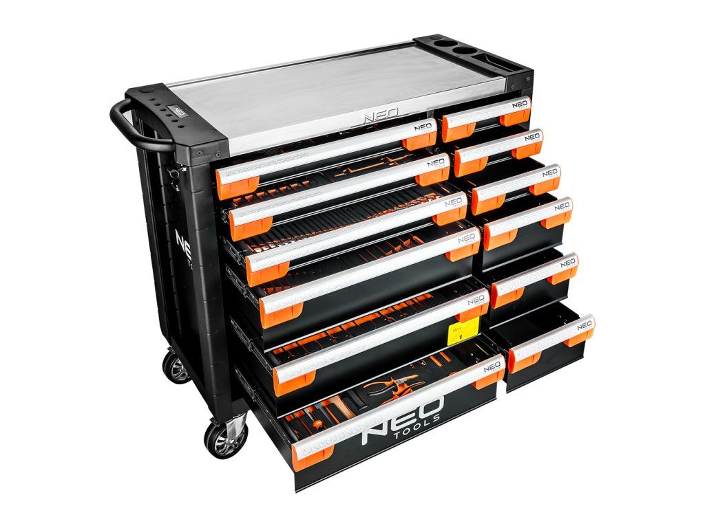 - Skříňka na nářadí NEO TOOLS PRO se 12 zásuvkami, 358 kusů nářadí.