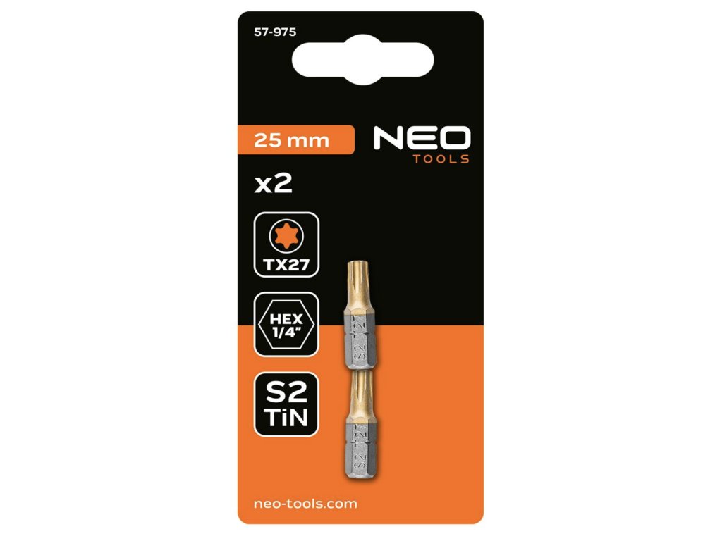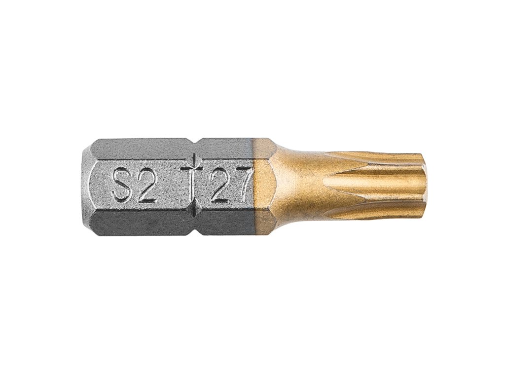 Šroubovací bity NEO TOOLS TX27 jsou dodávány v praktické sadě 2 kusů a navrženy pro přesnou montáž i náročné sériové práce. Jsou vyrobeny z kvalitní legované oceli S2, která vyniká vysokou pevností a odolností proti deformaci. Povrchová úprava TiN (nitrid titanu) zvyšuje tvrdost povrchové vrstvy a výrazně omezuje opotřebení při dlouhodobém používání.