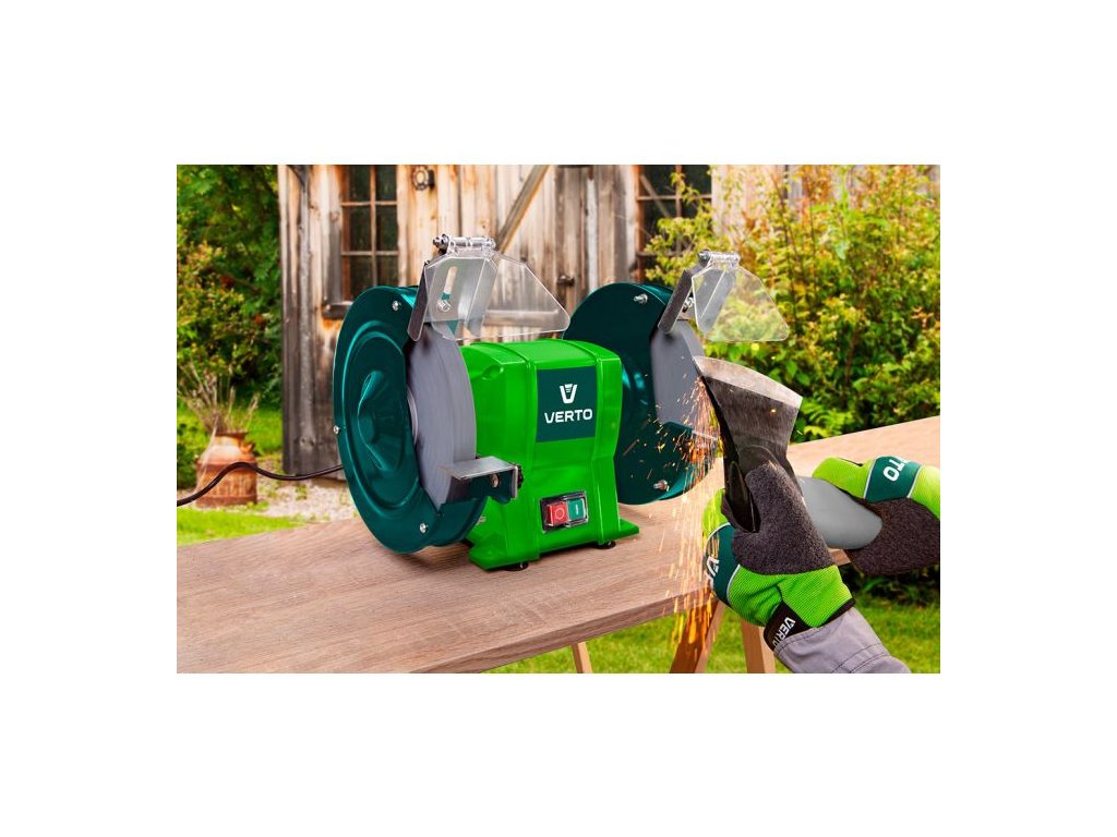 Stolní bruska VERTO 350 W s průměrem kotouče 200 mm.