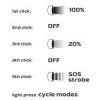 Svítilna má 3 světelné funkce: 100%, 20% a stroboskop.