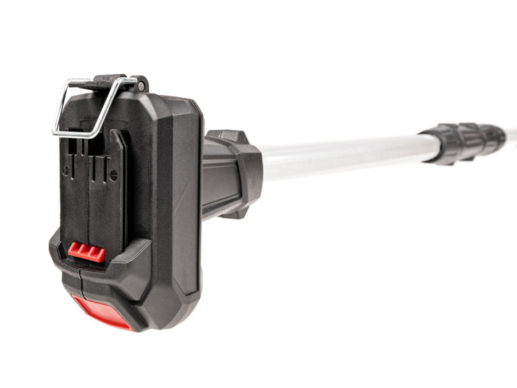 - Díky nastavitelné délce v rozsahu od 1,95 do 2,4 metru je možné pohodlně dosáhnout na vyšší větve bez použití žebříku. Konstrukce je vybavena měkkými úchyty pro komfortní držení a bezpečnostními prvky, které zabraňují nechtěnému odpojení. Nízká hmotnost usnadňuje manipulaci i při delším používání.