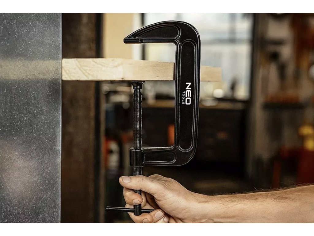 Tesařská (šroubová) svěrka NEO TOOLS typu C (G) o velikosti 25 mm (1") je praktický nástroj určený pro jemné a přesné upínání při dílenských, tesařských a montážních pracích. Je vyrobena z odolné litiny, která zajišťuje dobrou pevnost, stabilitu a dlouhou životnost i při pravidelném používání.