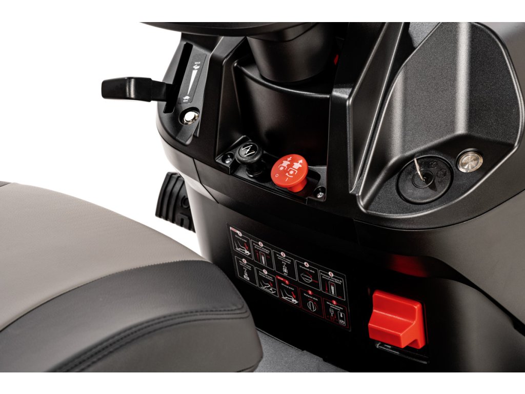 - Šířka záběru 93 cm a dva žací nože zajišťují rychlé a efektivní sekání. Posekaná tráva je shromažďována do prostorného koše o objemu 280 litrů, který lze snadno vyprázdnit. Možnost doplnění o mulčovací sadu nebo zadní výhoz zvyšuje univerzálnost stroje.