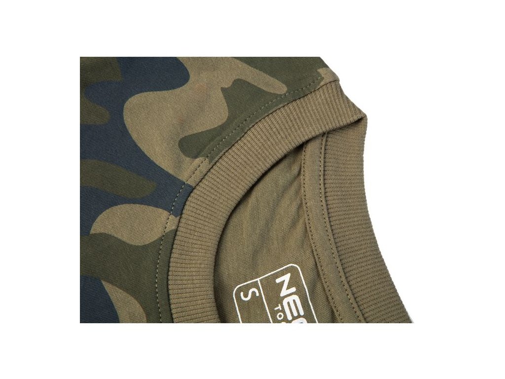 NEO pracovní tričko ze série CAMO v olivové barvě s jedinečným a asymetrickým camo vzorem.