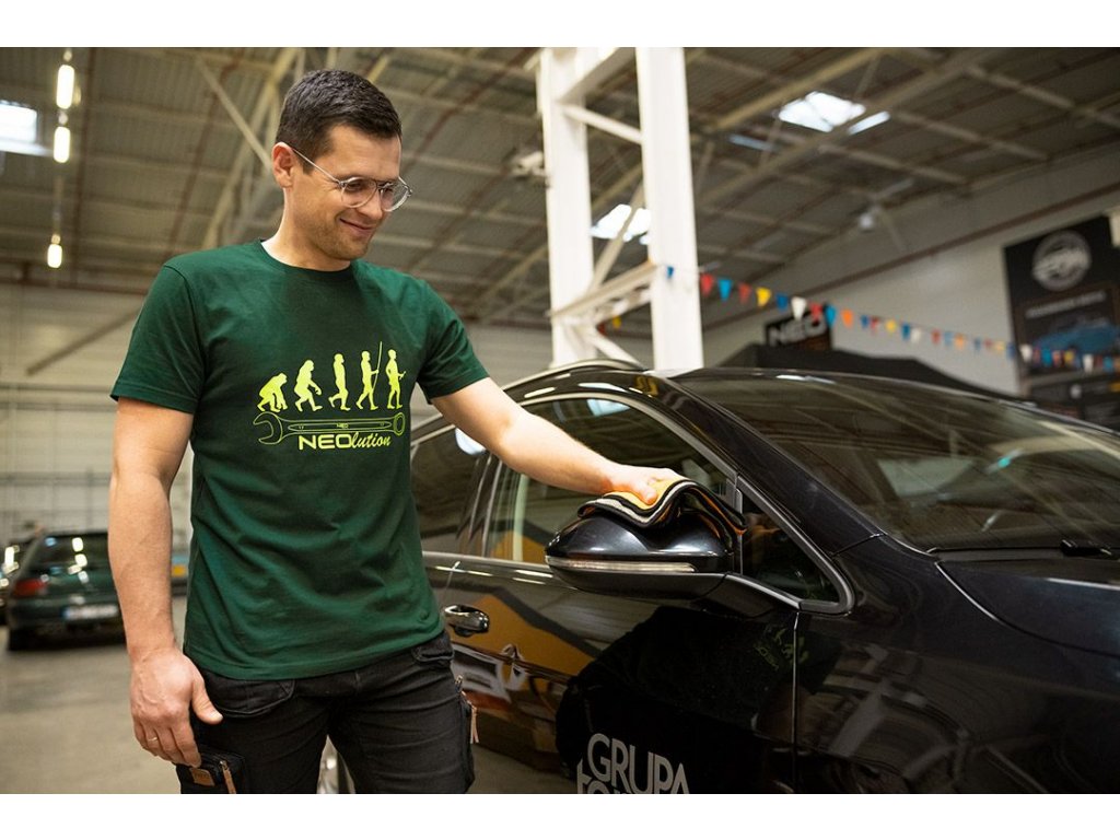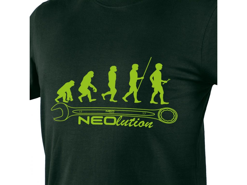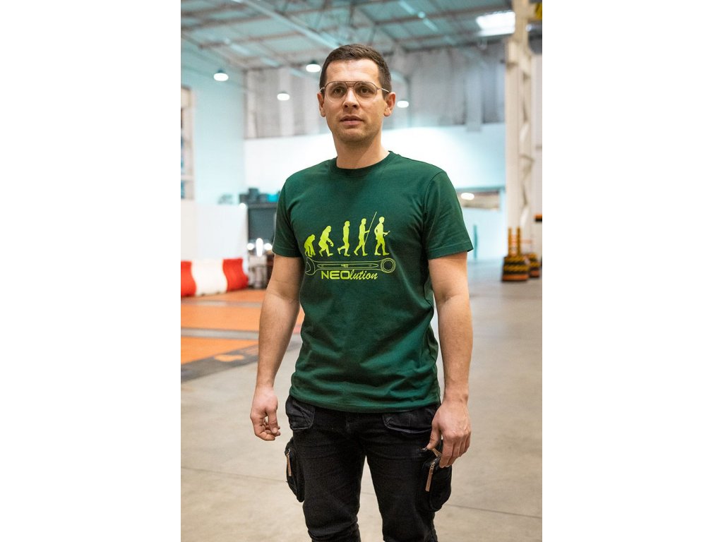 Moderní pracovní tričko s brilantním potiskem NEOlution ve velikosti M - XXXL - ukažte, že máte odstup a víte o módě! Produktem značky NEO je vysoce kvalitní tričko určené pro kutily. Láhvově zelené tričko má na přední straně neonově zelenou grafiku zobrazující zjednodušenou kresbu evoluce - od australopiteka k racionálnímu člověku pomocí nástrojů ... NEO! Na potisku je také vidět otevřený klíč NEO, jeden z bestsellerů značky.