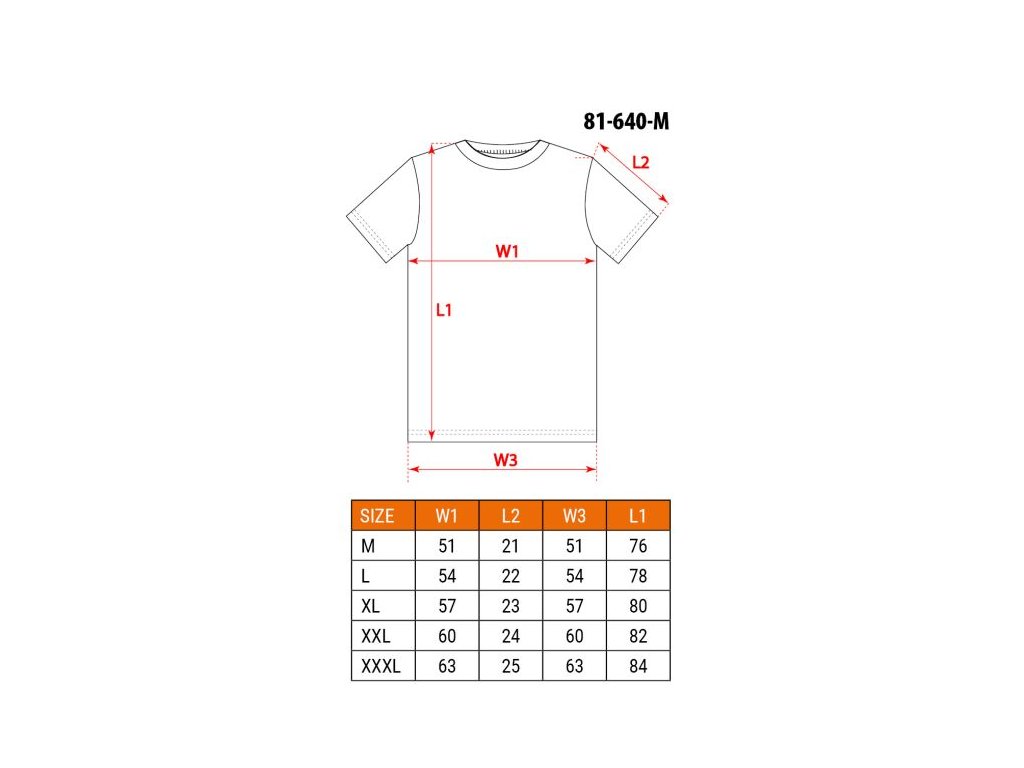 Tričko je vyrobeno z měkké 100% single jersey bavlny o gramáži 180 g/m2. Má krátké praktické rukávy a kulatý výstřih s gumičkou. Do trička je všita vložka , která usnadňuje identifikaci trička například na pracovišti. Oblečení odpovídá certifikátu CE.